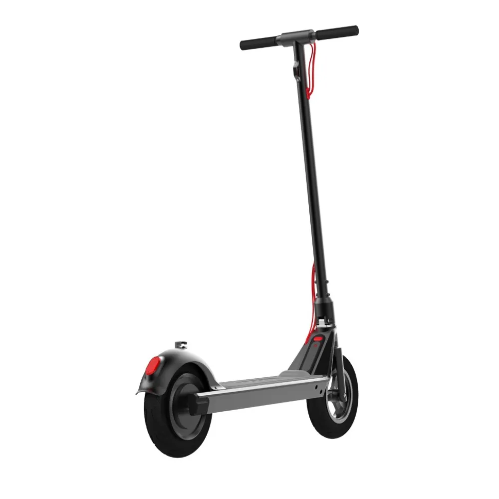 Визуально электросамокат выглядит привлекательно и заметно на фоне другой техники. При мощностных параметрах движка 350 Вт максимально допустимая производителем скорость составляет 35 км/час. Модель комфортная и практичная. Широкая устойчивая дека не скользит, выглядит презентабельно, достаточная для одновременного размещения двух стоп. Оснащенность техники 10-дюймовыми шоссейными колесами и фирменными тормозами обеспечивают отличный накат и своевременное торможение.