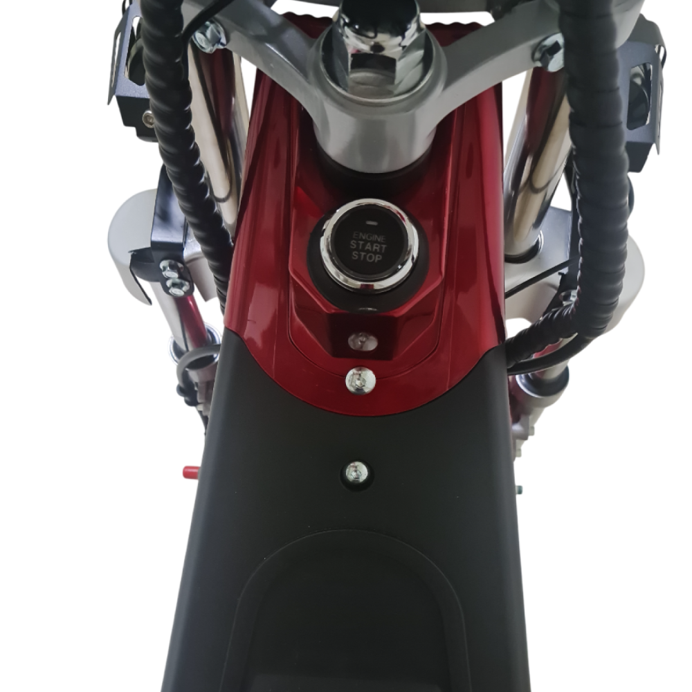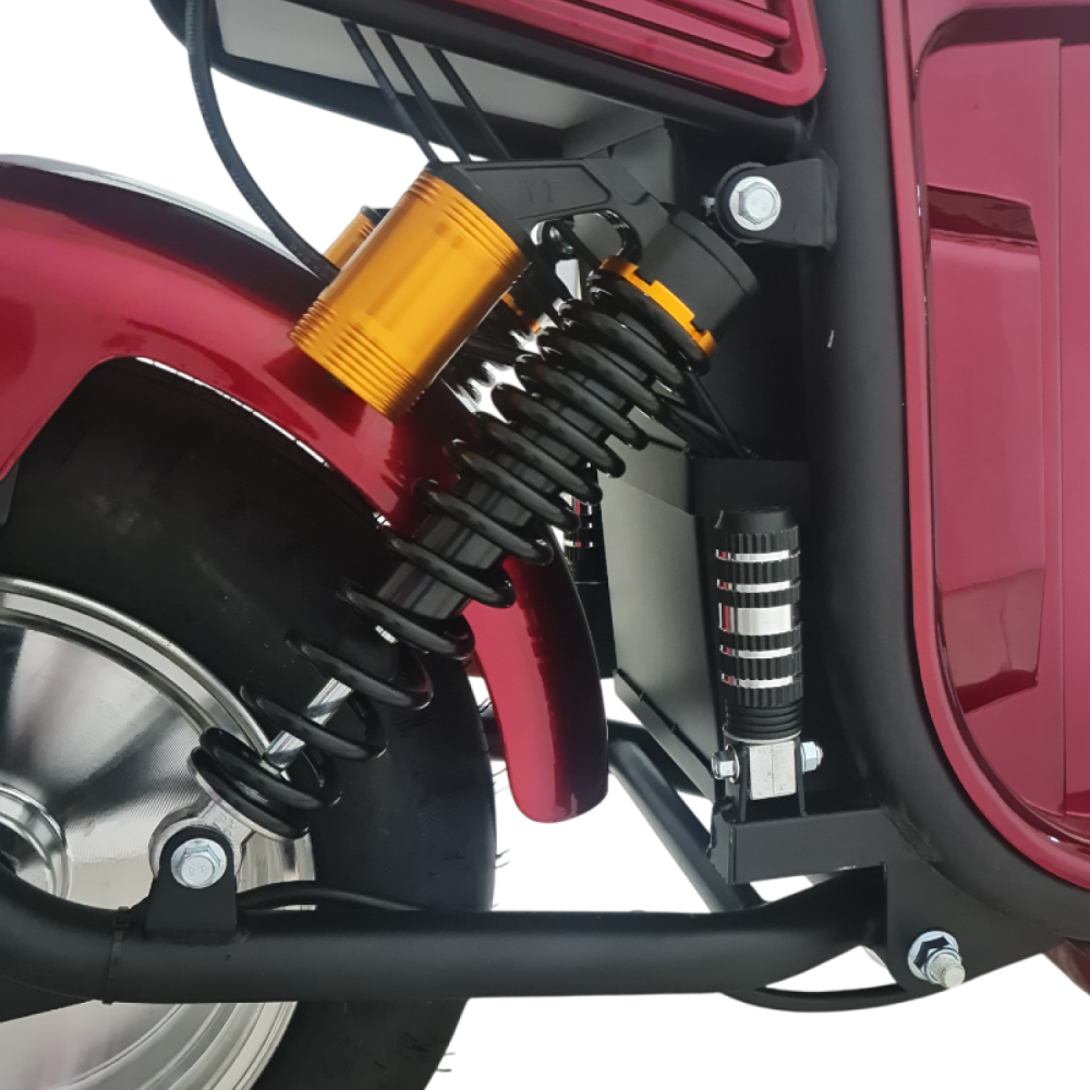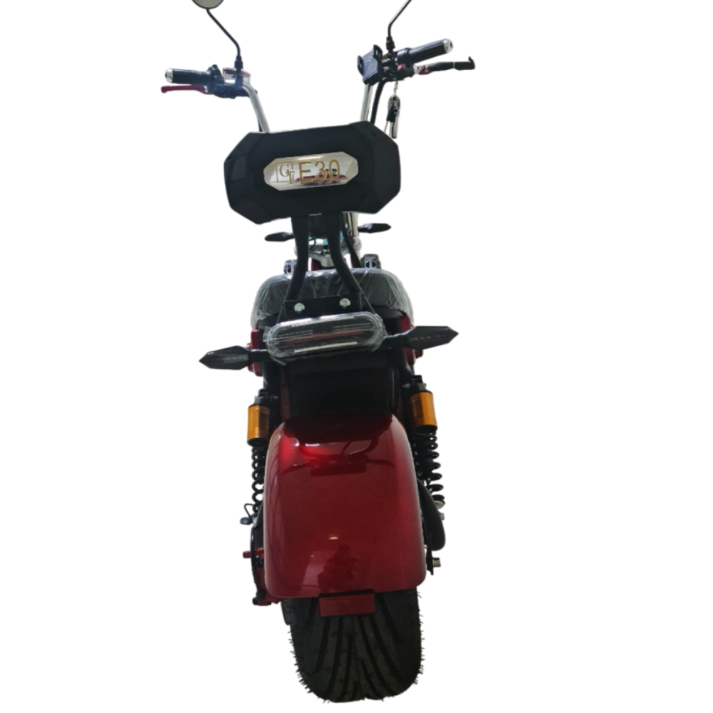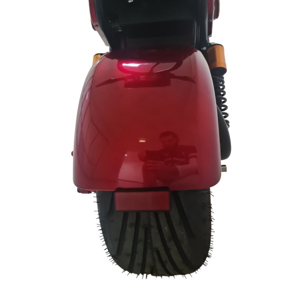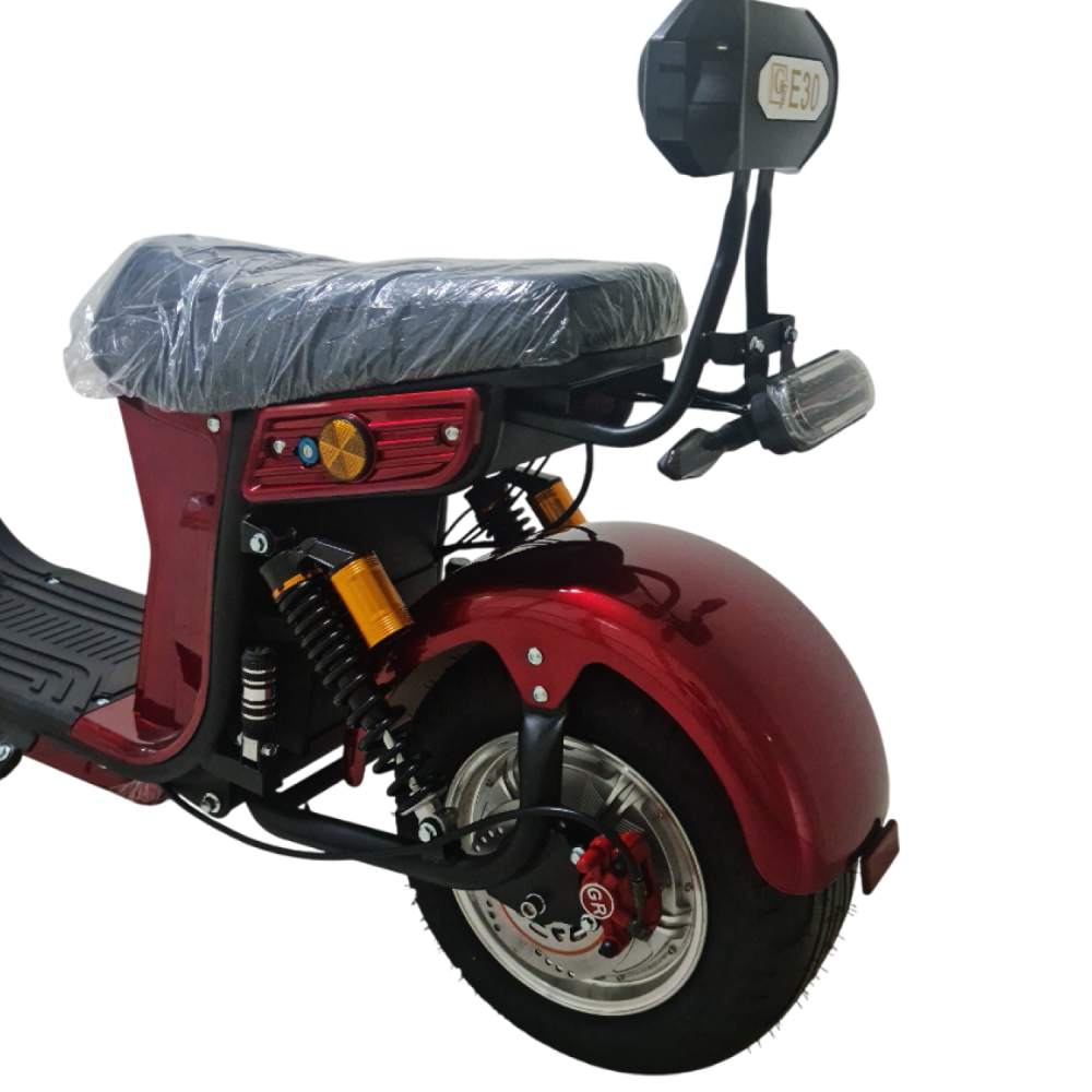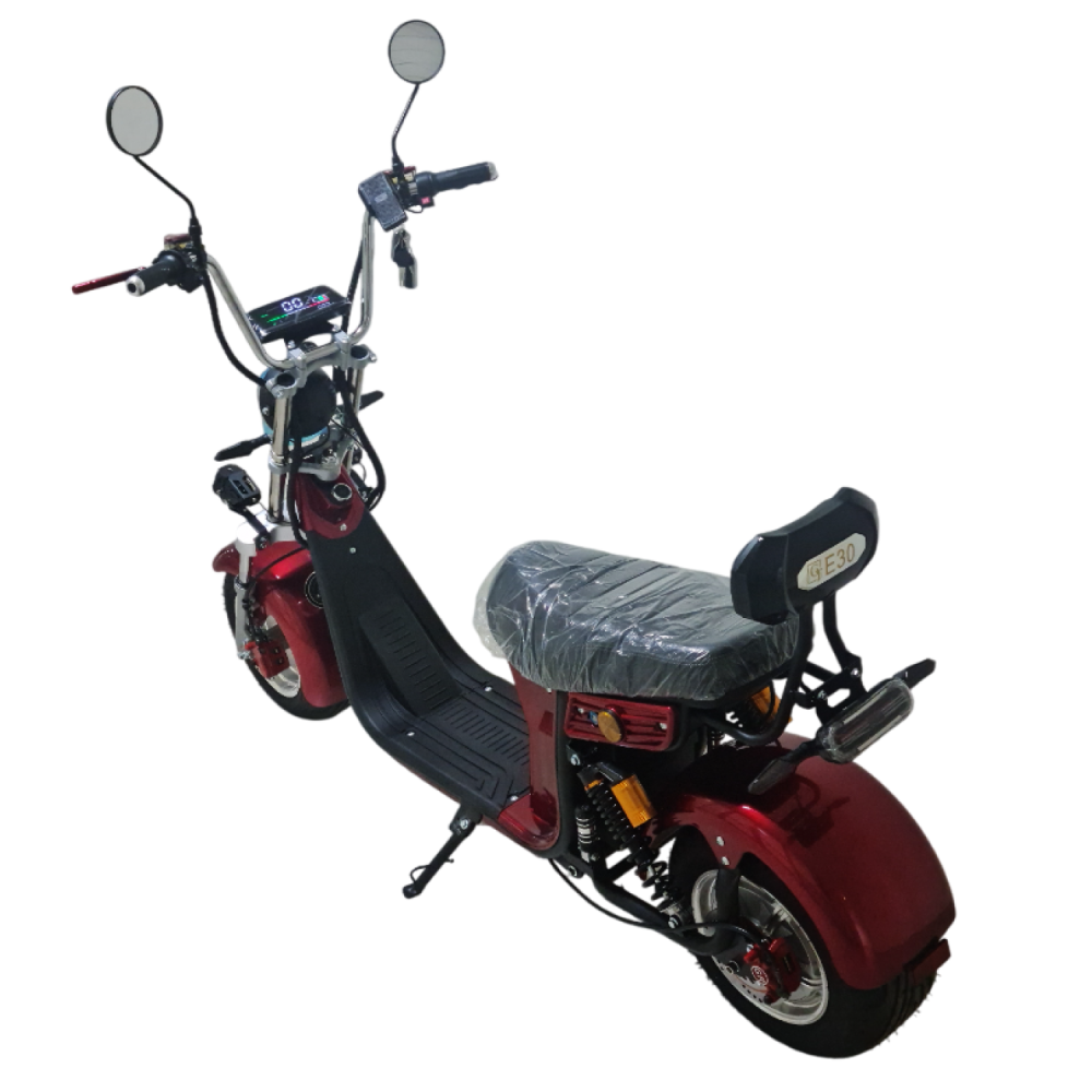 Электроскутер Citycoco GT E30 в красном цвете — это универсальное средство передвижения. С мощностью 3000W и задним приводом, он обеспечивает отличную динамику и маневренность на городских улицах. Благодаря двухколесной конструкции и надувным колесам диаметром 18 дюймов, скутер уверенно держится на дороге, что делает его идеальным для поездок по различным покрытиям.Съемный аккумулятор с напряжением 60V позволяет преодолевать расстояние до 50 км на одном заряде, что делает его идеальным вариантом для ежедневных поездок. Время зарядки составляет всего 5 часов, что обеспечивает быструю готовность к новым приключениям. Кроме того, в конструкции предусмотрено дополнительное место под аккумулятор, что увеличивает возможности автономной работы.Скутер весит 75 кг и может выдерживать максимальную нагрузку до 200 кг, что делает его подходящим для различных пользователей. Дисковые гидравлические тормоза обеспечивают надежную остановку, а большое мягкое сиденье и амортизаторы гарантируют комфорт даже при длительных поездках.Дополнительно, Citycoco GT E30 оснащен бортовым компьютером, зеркалами, звуковым сигналом, фарой и поворотниками, что повышает безопасность и удобство. Большая дека под ноги и прочная конструкция делают поездки еще более приятными.Электроскутер Citycoco GT E30 — это идеальное сочетание стиля, мощности и комфорта для тех, кто ценит удобство и скорость в городской среде.