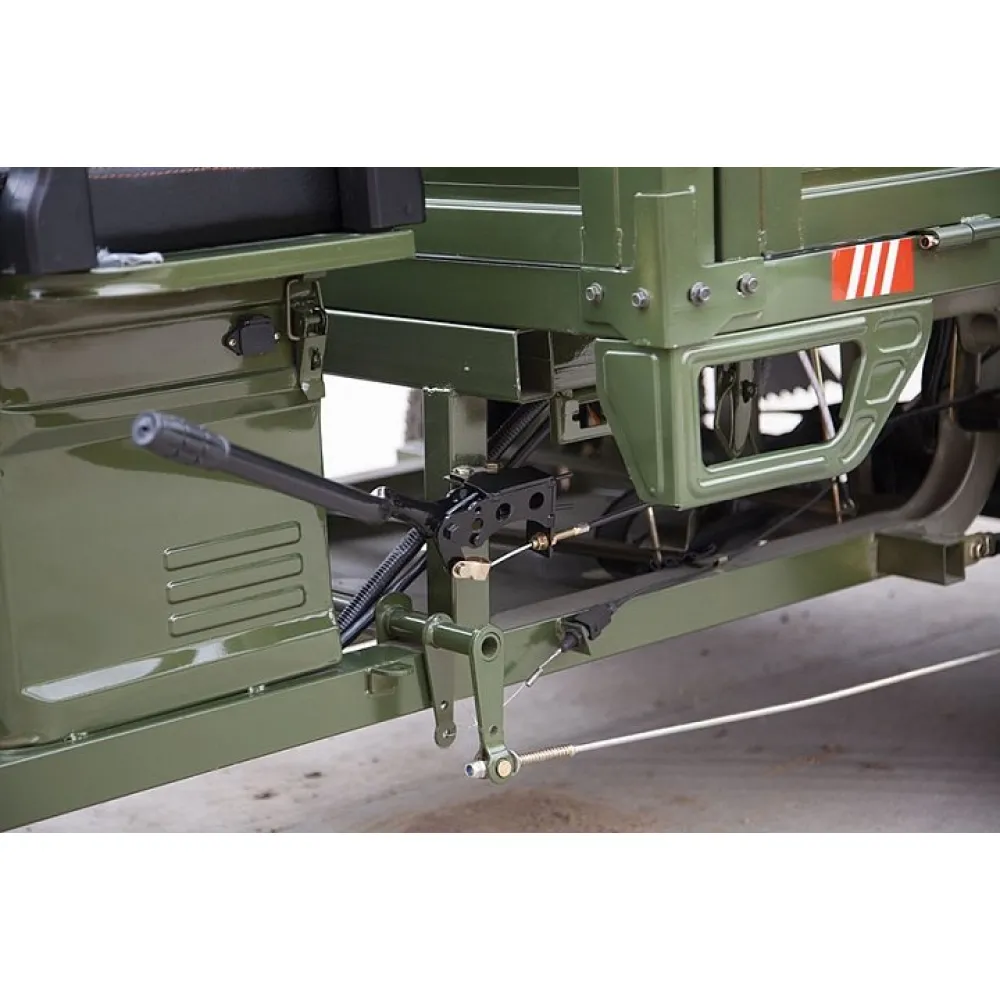 Модель оснащена водительским и дополнительным пассажирским местом, рассчитана на грузоподъемность 1200 кг. Комплектация допускает движение в вечернее и ночное время, в т.ч. и по бездорожью, имеется противоугонная сигнализация.