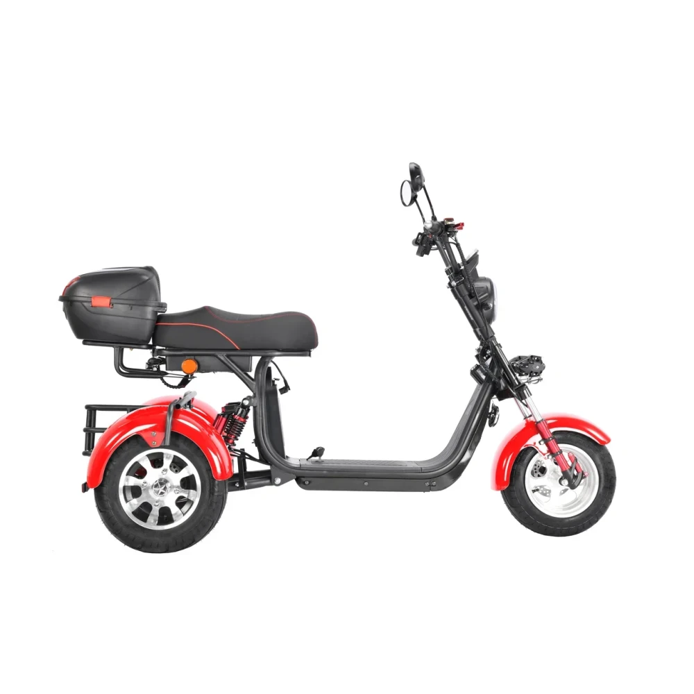 Трехколесный скутер CityCoco WS-Pro 3000W Trike+ красный - быстрый городской транспорт с литыми дисками и широкими колесами.