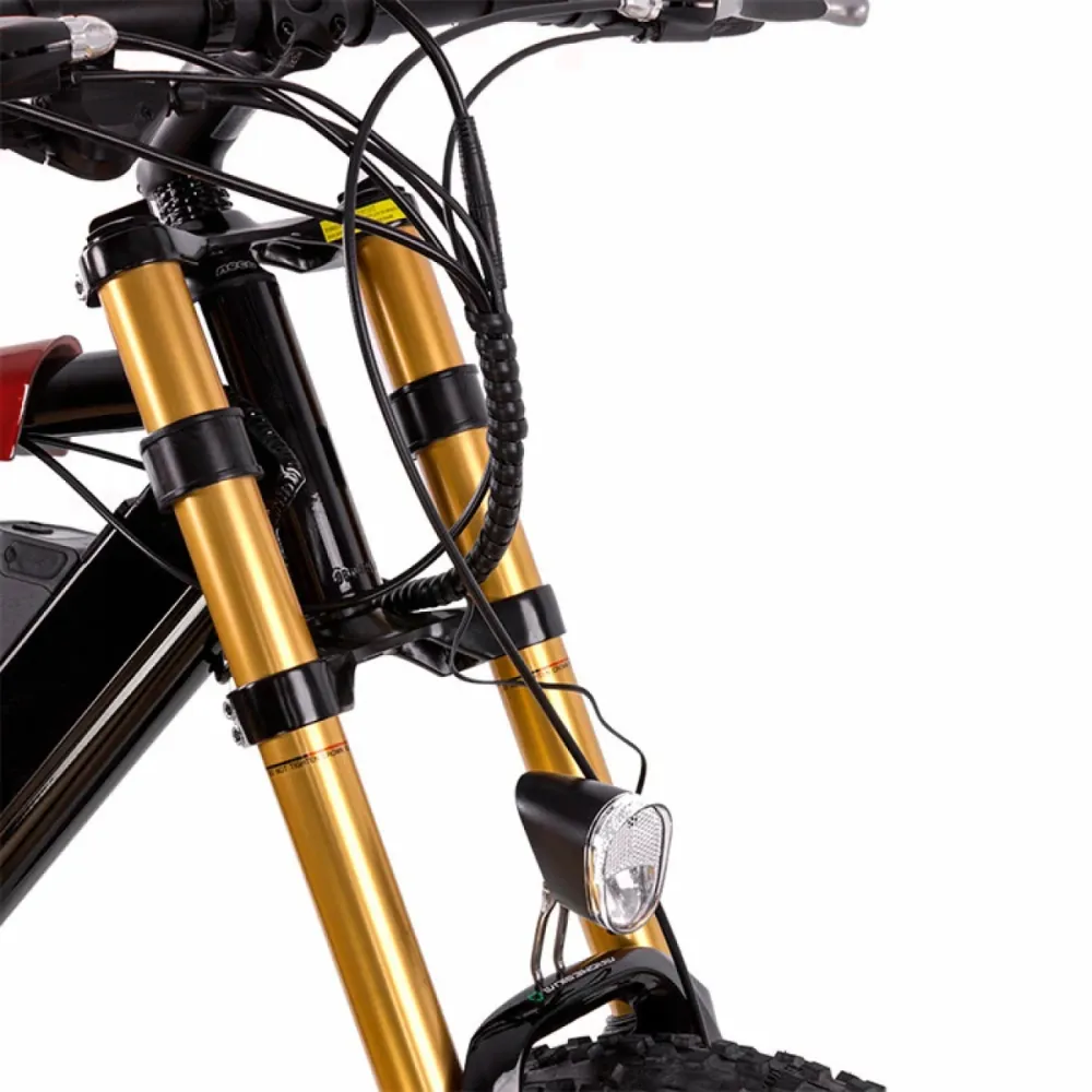 Вместе с электродвигателем бренда MXUS с параметрами мощности 1500 Вт способен показать, что такое экстрим и выброс адреналина. Максимальные скоростные характеристики и пробег при емкости батареи 16А*ч составляют 52 км/час. По желанию райдер может увеличить пробег за счет использования смешанного режима. 8-скоростная техника поддерживает 5 режимов мощности, оснащена передней светодиодной фарой, благодаря которой движения в вечернее и ночное время перестает быть проблемой.