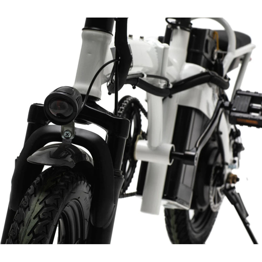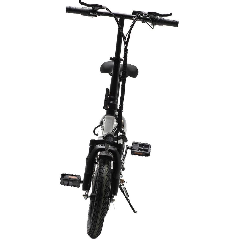 Устройство выдерживает максимальную нагрузку пользователя до 100 килограмм, а само весит всего 24 килограмма. Наш интернет-магазин предлагает вам приобрести электровелосипед по 100% предоплате, чтобы мы доставили его до вашей квартиры в любой регион России абсолютно бесплатно. Аккумулятор девайса даст возможность проехать до 40 километров без подзарядки, а заряжается всего за одну ночь – от 0 до 100 процентов за 7 часов. Колеса среднего диаметра - всего 14 дюймов, но и этого хватает для обеспечения отличной проходимости и мягкости хода девайса. У этой модели довольно большая мощность и проходимость, что объединяется в совокупности с высокой компактностью.