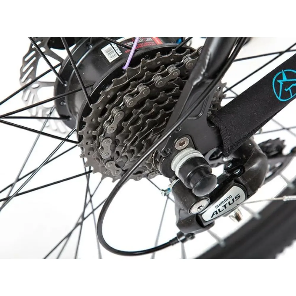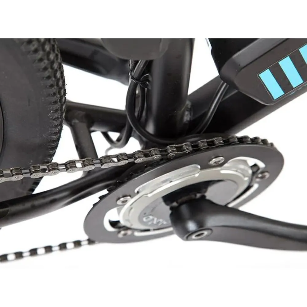 Техника оборудована электромотором 250 Вт с задним цепным типом привода для разгона до 35 км/час за короткое время. Дисковые гидравлические тормоза гарантируют мгновенную остановку в любой дорожной ситуации. Батарея расположена в боксе под рамой и быстро заряжается за 5 часов.