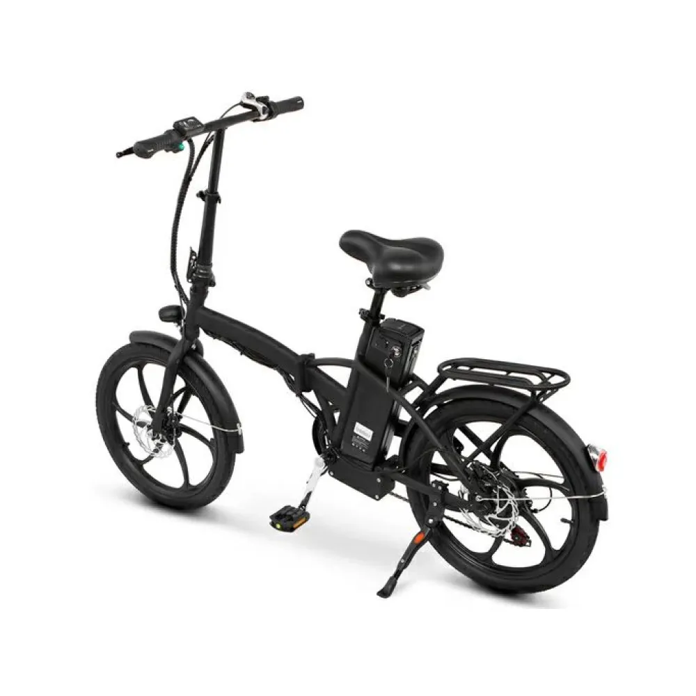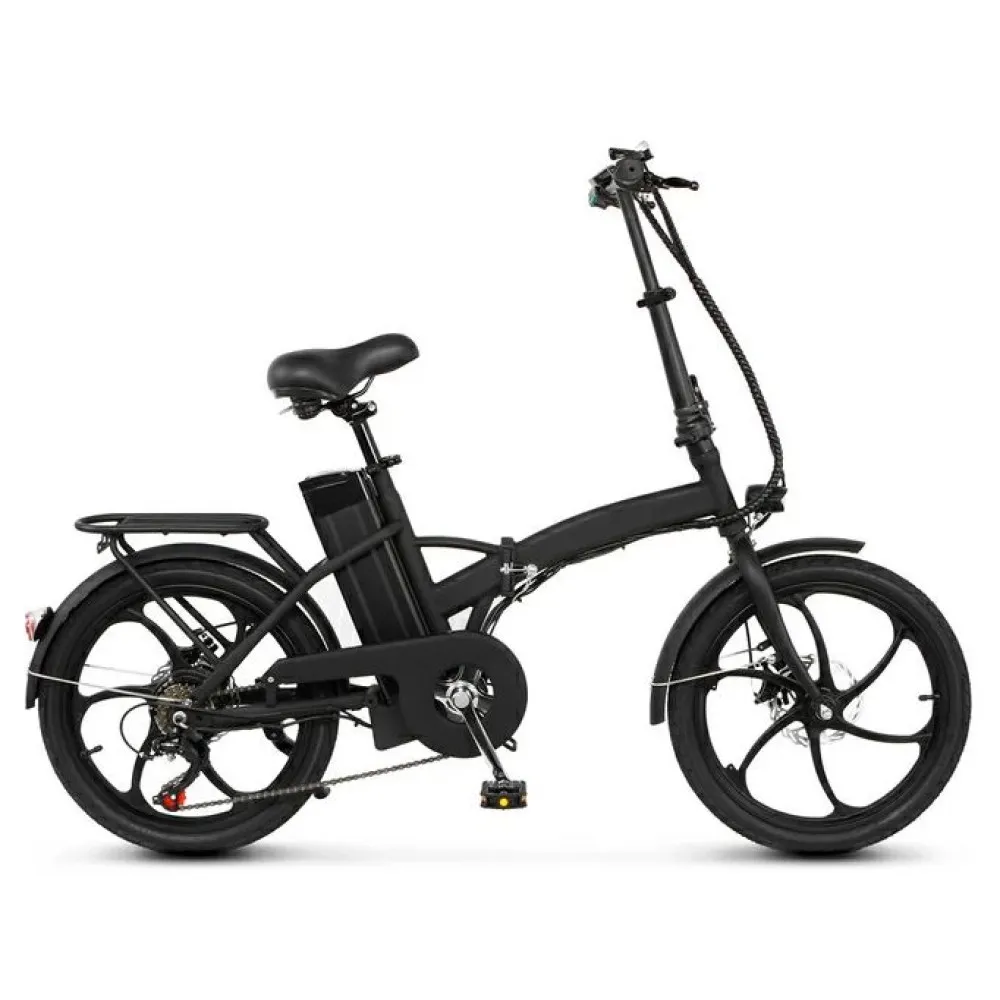 Основа электровелосипеда – рама, изготовлена из ударопрочной долговечной рамы. Практичный удобный багажник удобен доля перевоза клади и катания маленьких детей. Анатомическое седло пружинное, мягкое, не вызывает дискомфорта. 6 скоростной режим переключается механически. Электровелосипед оснащен светодиодными фарами, благодаря которым возможна езда в ненастье и вечернее время. Информационная панель, расположенная на видимой части руля, предоставляет полную информацию о скоростных параметрах, состоянии батареи и протяженности пути. Для заказа байка выгодно предлагаем связаться с менеджером интернет-магазином.