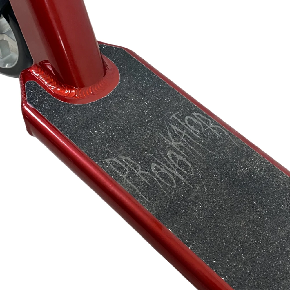Самокат трюковой Tech Team Provokator 47 red (УЦЕНЕННЫЙ) — это отличная возможность приобрести качественный самокат по сниженной цене.. С его весом всего 2,85 кг, он легок и маневренен, что обеспечивает отличную контролируемость и возможность выполнять сложные трюки. Дека имеет размеры 120 мм в ширину и 470 мм в длину, что позволяет наезднику комфортно разместить ноги и обеспечивает стабильность во время трюков. Самокат Tech Team Provokator 47 red подходит для наездников с ростом от 128 до 152 см, что делает его идеальным выбором для детей и подростков. Диаметр колеса составляет 110 мм, обеспечивая отличную амортизацию и сцепление с поверхностью, что позволяет легко преодолевать препятствия и выполнять трюки на высоком уровне. Дека самоката изготовлена из прочного алюминия ALU 6061, что обеспечивает надежность и долговечность конструкции. Красный цвет придает самокату стильный и энергичный вид. Колеса изготовлены из полиуретана, обеспечивая отличную амортизацию и плавную езду. Самокат трюковой Tech Team Provokator 47 red способен выдерживать нагрузку до 100 кг, что делает его подходящим для различных возрастных групп и стилей катания. Он сочетает в себе прочность, стильный дизайн и отличные характеристики, позволяя наслаждаться трюками и фристайлом на полную катушку. Самокат использовался в тест-драйве, поэтому имеет царапины на корпусе, которые не влияют на его техническое состояние. Это идеальный выбор для тех, кто хочет попробовать свои силы в трюковом катании без больших затрат.